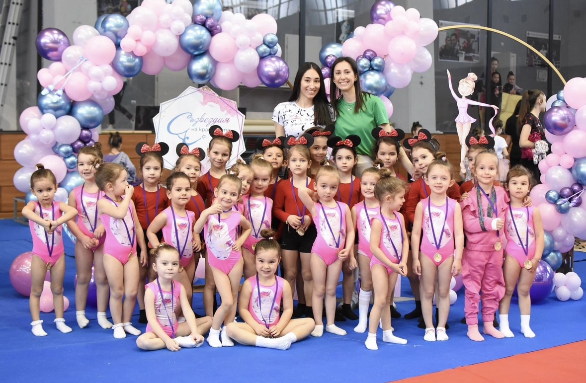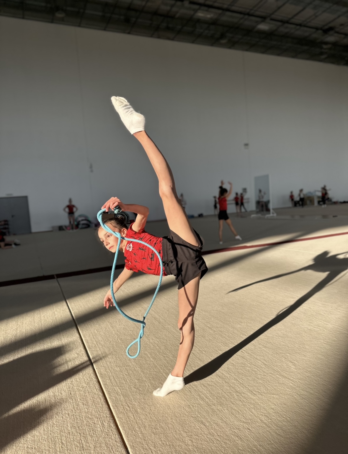 Нашата школа тренира в модерна и напълно оборудвана тренировъчна база, създадена специално за нуждите на художествената гимнастика. Просторна зала с високи тавани, специализирана настилка, състезателен килим и пълна гама уреди – всичко необходимо за качествена подготовка и развитие на гимнастичките.
