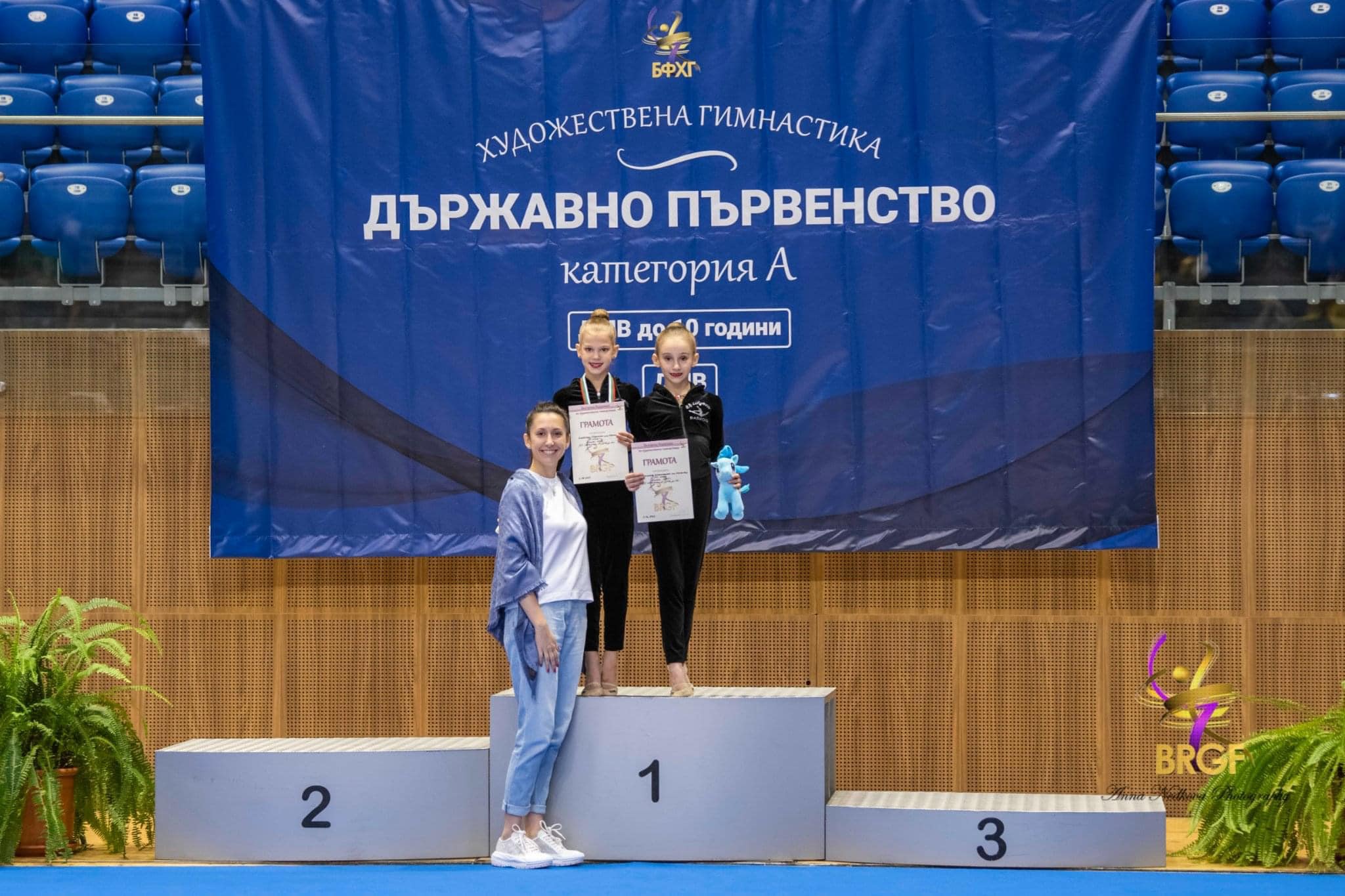 Никол Павлова и Андреа Николова се класираха на 8-мо място във финалите на бухалки и лента на Държавното първенство „А“ категория.